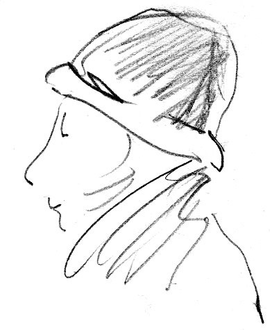 cino fogyasztása közben szemlélve és firkálva a sok érdekes figurát, kellemesen töltöttem az időm. Ez hál' istennek többször is előfordulhatott. Ezek a vázlatok, skiccek viszont többnyire elkallódtak vagy talán kidobtam őket. Egyet viszont megtartottam, akárhányszor selejteztem, fennakadt a szűrőn. Ez a kicsit kékharisnyának tűnő női figura, valahogy mindíg ifjúkorom egyik kedvenc könyvének, Milne Micimackójának E. H. Shepard által rajzolt figuráira emlékeztetett.