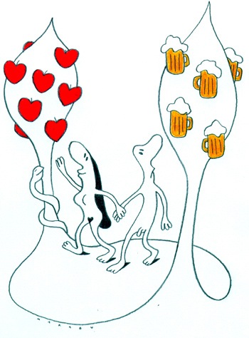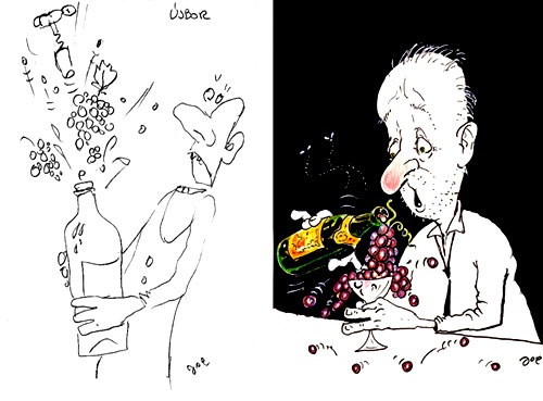 Valamikor, hajdanán, valami bor témájú pályázatra volt egy ötletem, amit leskicceltem gyorsan aztán már nem tudom miért, de félretettem. Most ráleltem e régi vázlatra és összehasonlítottam az egykor jobbnak vélt megoldással és rájöttem, ez is egy volt a számtalan hibás döntésem közül.