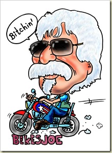 Megbántottam Kid Cardonát, pedig nagyon jó fejnek tartom. Mint már korábban is utaltam rá, van egy közösségi oldalunk, hol mindenki rajzol mindenkit, meg aztán szakmai ötletekkel és egyébb marhaságokkal fáraszthatjuk egymást. Nos ez a texas-i mescelero apacs, aki vietnami veterán, fedett narkózsaru meg tudja a fene mi minden volt még, elkészítette rólam ezt az opus-t és én nem vettem észre. Ki is fejezte rosszalását, hogy én őtet ignorálom, így azután vezeklésül ide is felteszem, és kérem a bocsánatát nagyfokú figyelmetlenségem miatt. Az igaz, hogy csak egyszer vezettem apám pannóniáját ki mögöttem ült és ahogy bekanyarodtam az utcába el is hagytam szegényt.